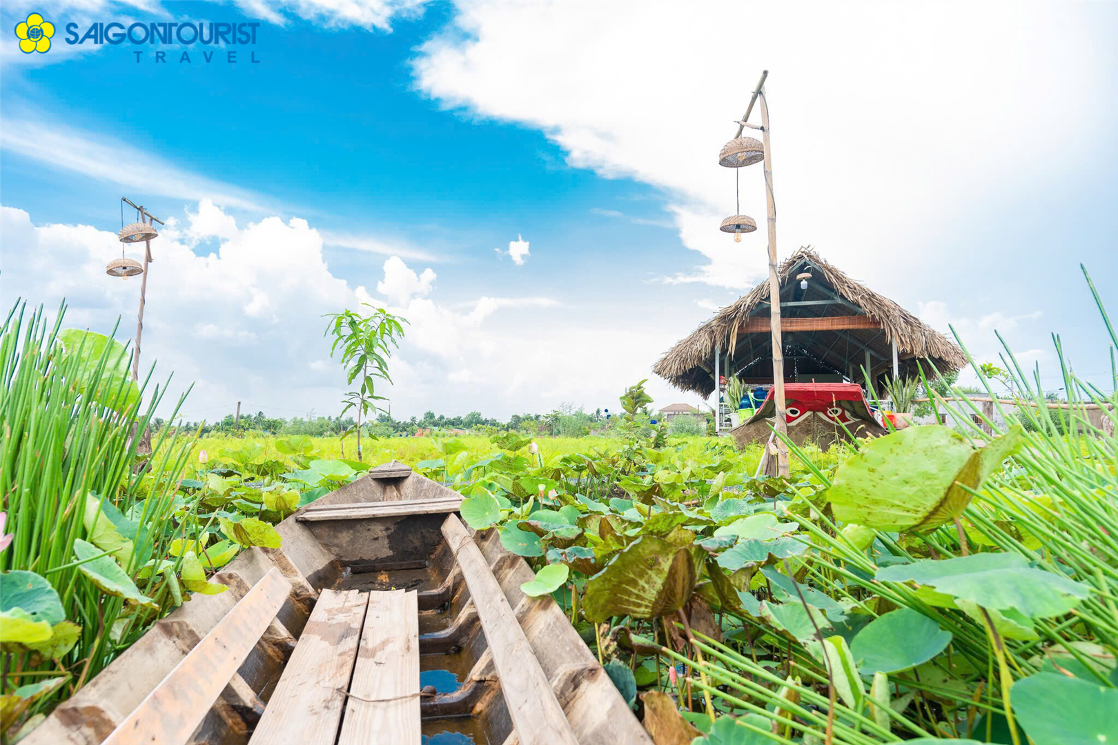 After lunch, choose your adventure: Paddle through the lotus pond: Enjoy a peaceful boat ride on the lotus pond. Or stand-up paddleboarding to experience the thrill of SUP on the Ben Luc River (additional fee: 100,000 VND/person).