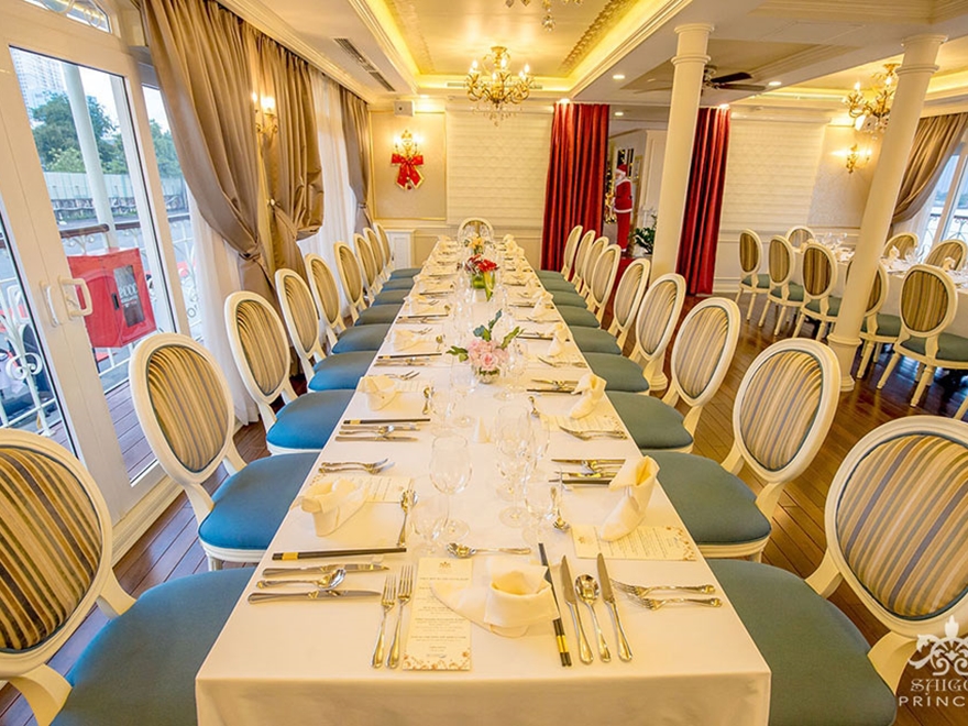 Indulge in exquisite dishes aboard the Ben Thanh/ Saigon Princess. Create unforgettable memories with your loved ones or family while enjoying the breathtaking views of the city skyline and sparkling lights. It is a perfect way to experience Saigon in the most luxurious and intimate setting.