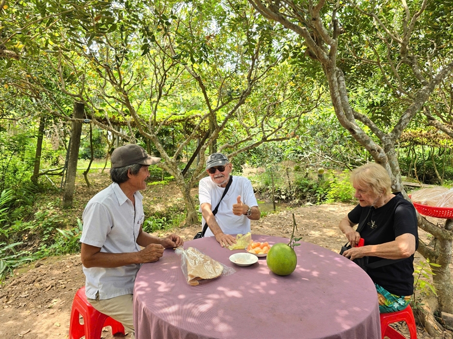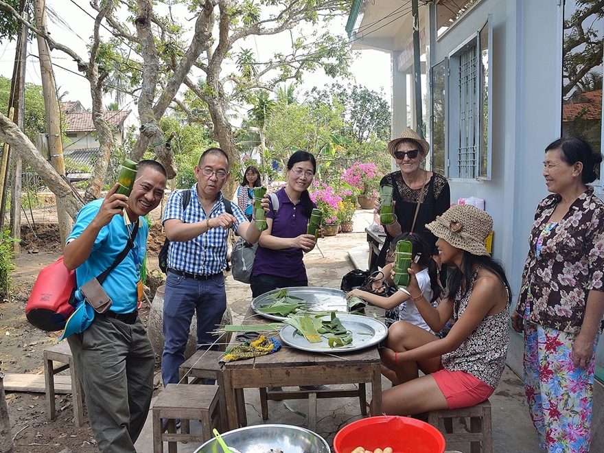 Arrive at a traditional home and enjoy the warm Tet atmosphere. See family altars, festive flower decorations, and the holiday kitchen. Experience Banh Tet making and try wrapping your own cake. Enjoy fruit from the family orchard and relax in the garden.