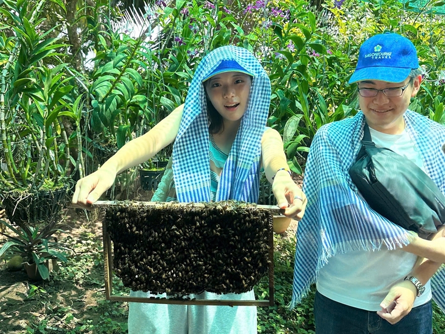 • Visit a honey farm: taste honey tea, learn about beekeeping, and take photos with local animals • Take an electric cart ride around the island’s village roads • Watch rice paper making and popped rice demonstrations • Boat transfer to Ben Tre for a deeper delta experience • Enjoy a peaceful hand-rowed sampan ride through narrow canals • Take a vintage xe lam ride through coconut groves • Visit a coconut candy workshop to see how the famous Ben Tre sweets are made and enjoy tasting • Refresh with a fresh coconut on the boat back to the pier