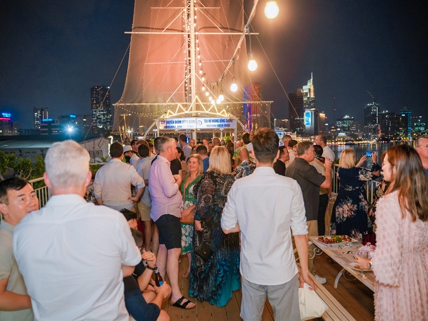 Guests arrive at Saigon Port, No. 5 Nguyen Tat Thanh Street, Ward 13, District 4. Check-in and board the Indochina Queen boat. Enjoy a welcome drink and take your seats in the dining area.