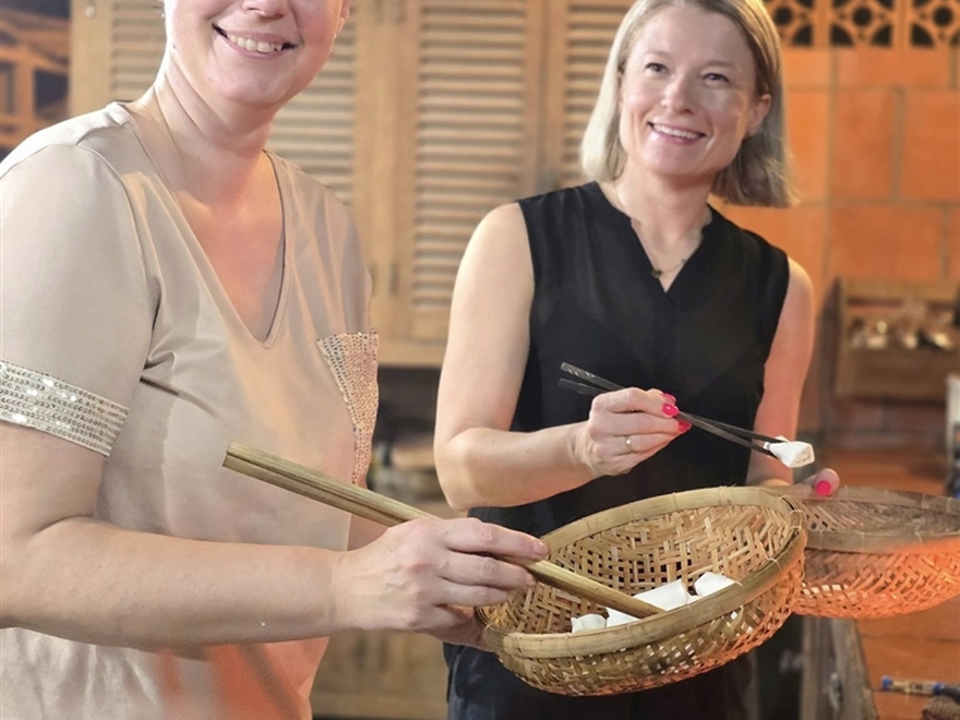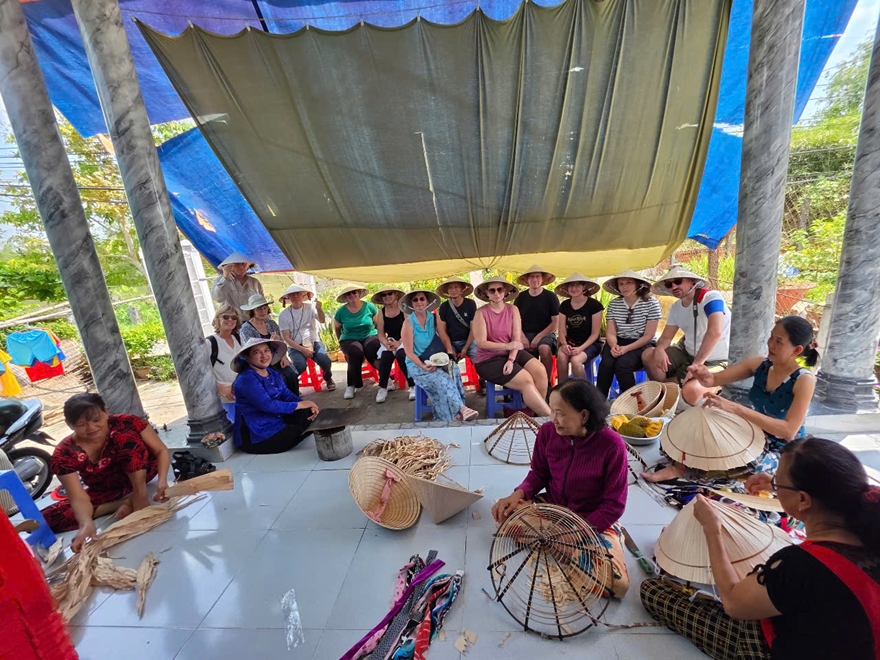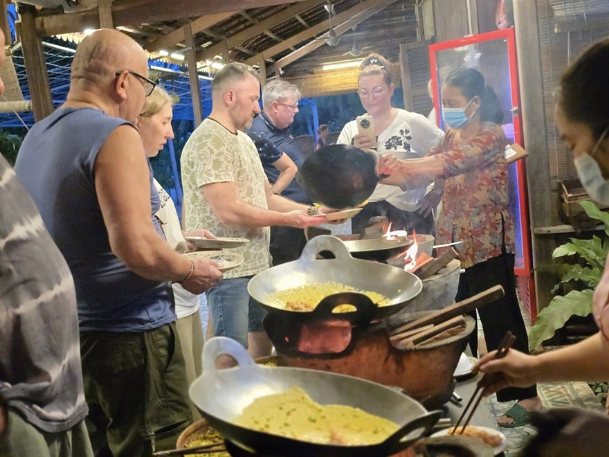 07:30 – Pick-up from hotel in Ho Chi Minh City. Depart for Cai Be (~2.5 hours drive). 10:30 – Arrive in Cai Be. • Board a boat and explore the Mekong River. • Visit the ancient church of Cai Be. • Cruise through small canals under shaded mangrove trees. • Stop at local orchards to taste fresh tropical fruits while enjoying traditional Southern folk music. 12:00 – Continue to Tan Phong Island. • Start a biking trip through village paths. • Discover local daily life: orchards, schools, pagodas, and traditional houses. • Visit local workshops to see how villagers make products from water hyacinth (baskets, bags, hats, etc.). 13:00 – Lunch served at a local homestay on An Binh Island. 14:30 – Visit Ut Trinh / Ut Quynh / Ut Binh homestay. • Walk or bike around the village. • Visit local workshops: rice paper, coconut candy, popped rice. • Enjoy tea and homemade sweets. 17:30 – Join the host family to prepare dinner. • Learn to cook traditional Vietnamese dishes. 19:00 – Dinner and overnight at homestay. Evening: Free time for dinner and leisure.