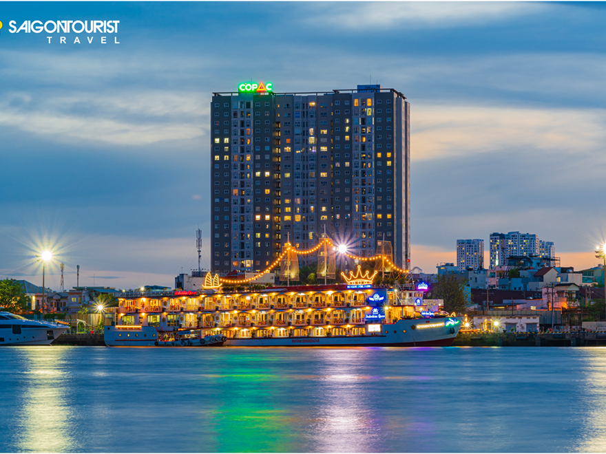 Enjoy a wonderful dinner buffet on the boat, with traditional music melodies blending with the cool space of the Saigon River when the city lights up