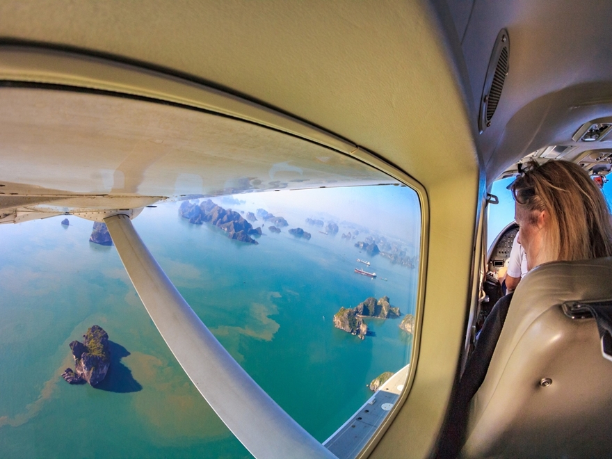 Unlike cruising, the flight reveals a unique aerial perspective of thousands of limestone islets rising like dragons from the sea.