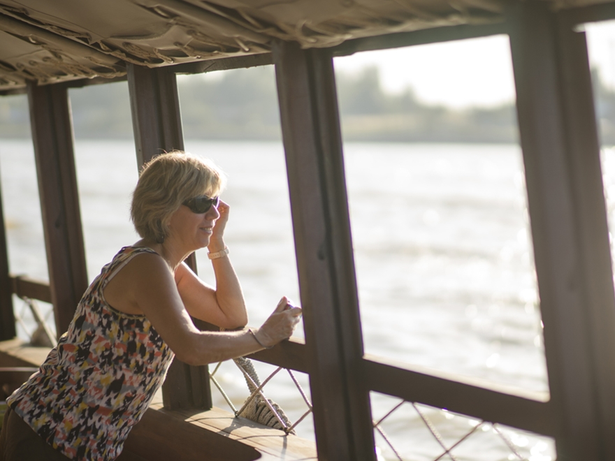 Savor a peaceful dinner served onboard before settling in for the night on the Mekong.