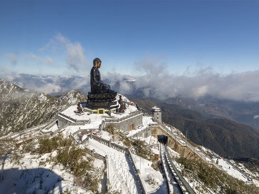 Disembark at the upper station (~3,000m elevation). Explore the Fansipan Spiritual Complex. Walk or take the mountain funicular (not included) to reach the summit. Conquer the Fansipan Peak (3,143m) – the Roof of Indochina. Take photos at the summit monument surrounded by clouds and stunning views